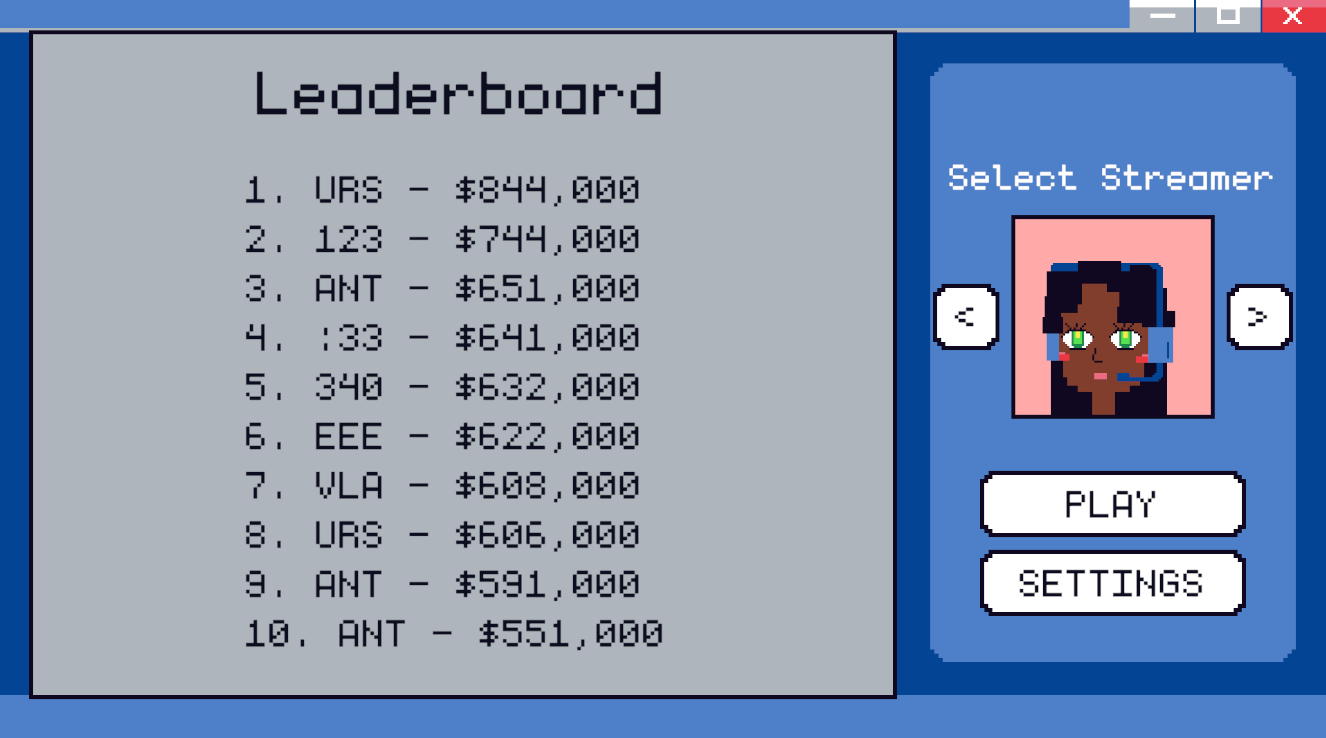 How much money can you make until your viewership inevitably plummets ?!?! Find out and compete with other people and try to make it to the leaderboard!